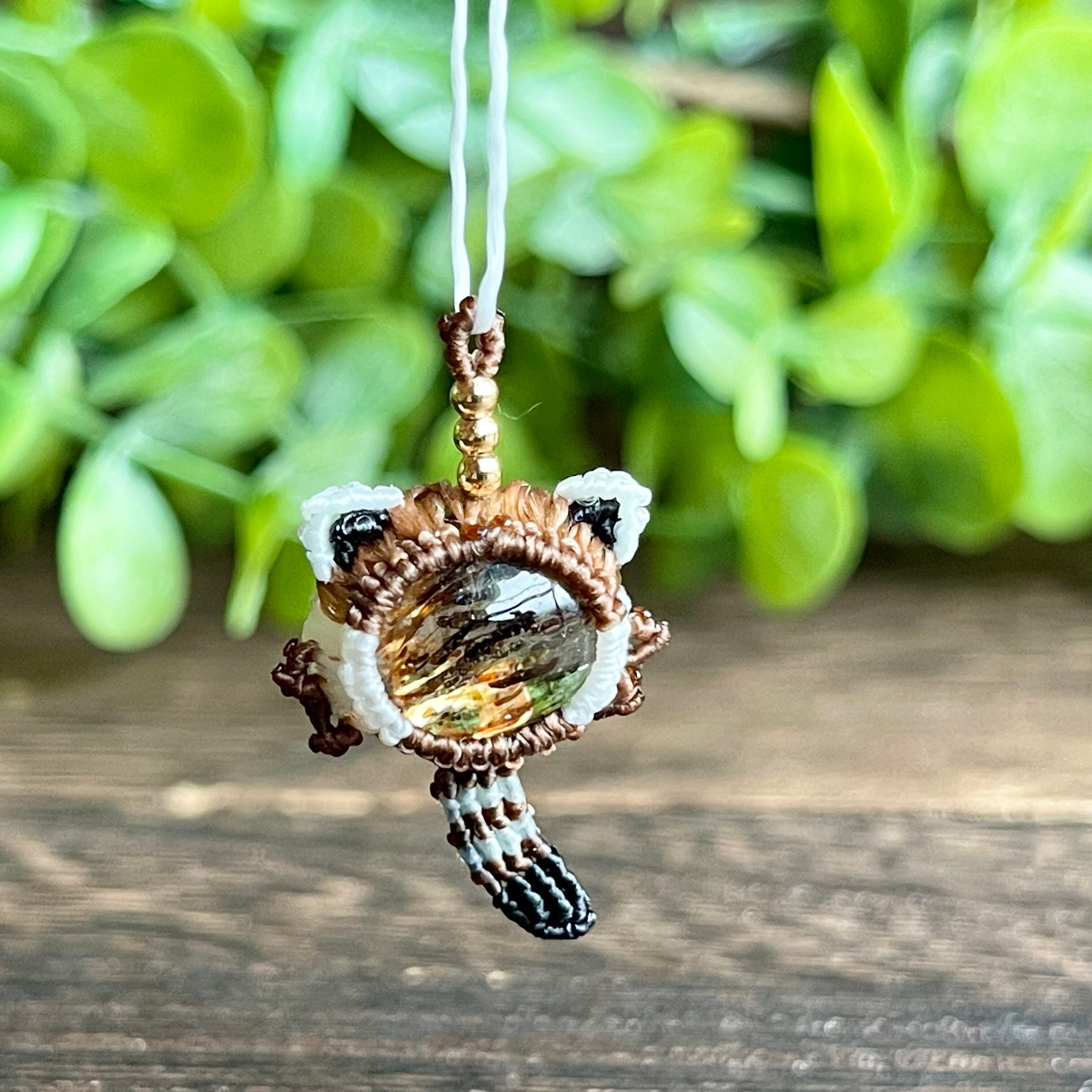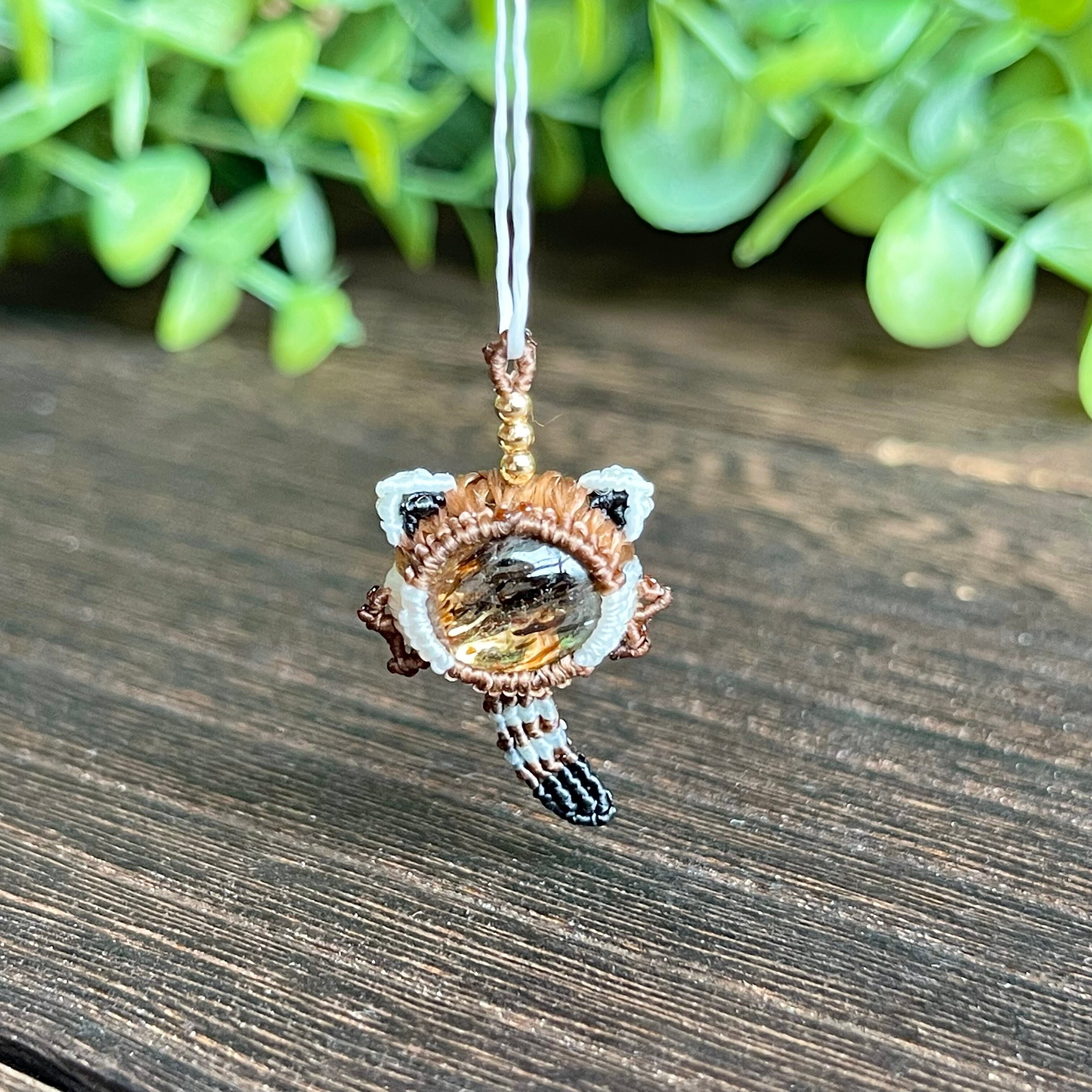 フォリエーテッドマイカinクォーツ[レッサーパンダ]マクラメアクセサリー〈チャーム、ネックレス、ピアス、イヤリング〉