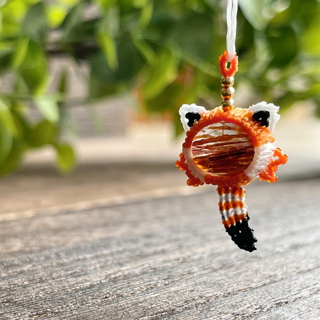 フォリエーテッドマイカinクォーツ[レッサーパンダ]マクラメアクセサリー〈チャーム、ネックレス、ピアス、イヤリング〉
