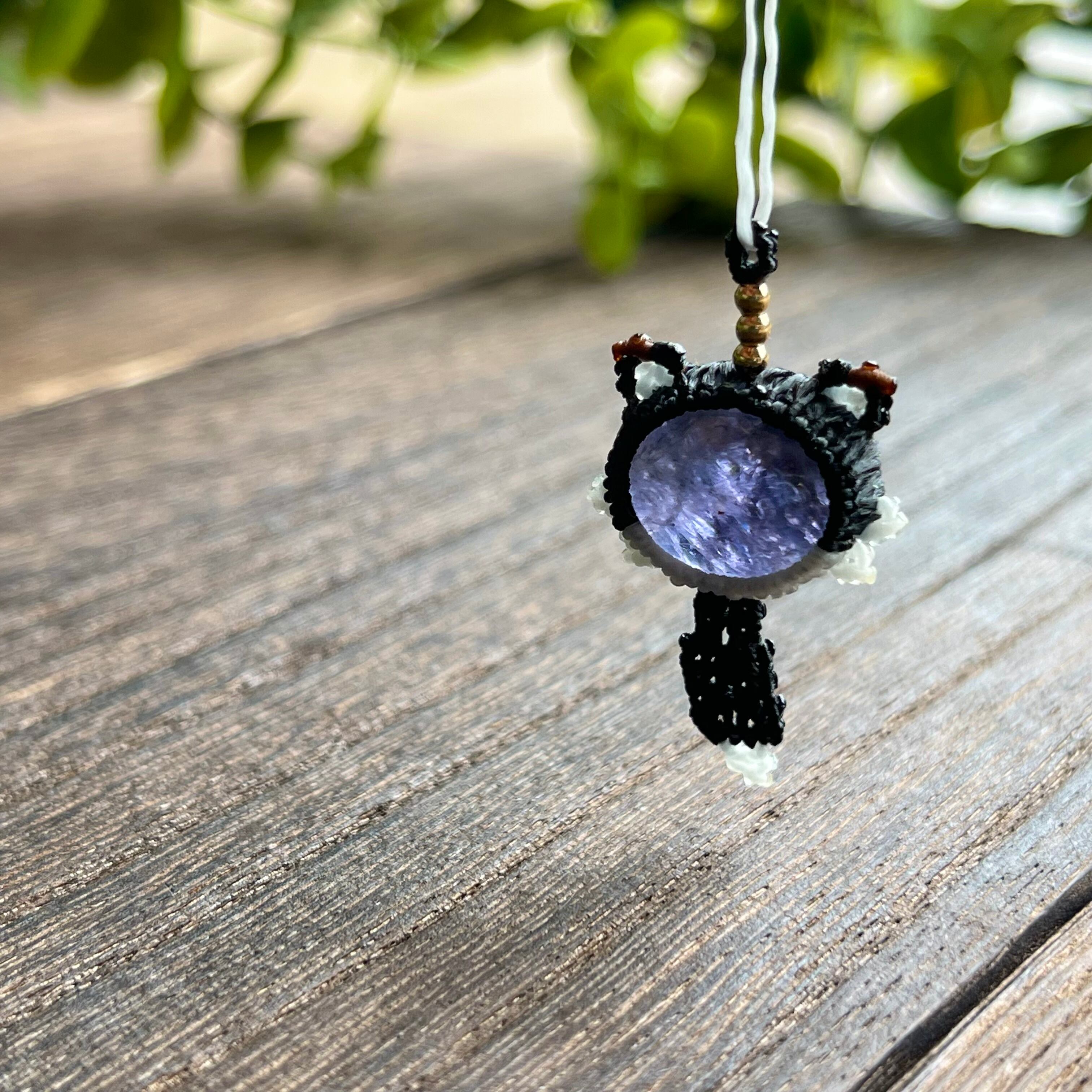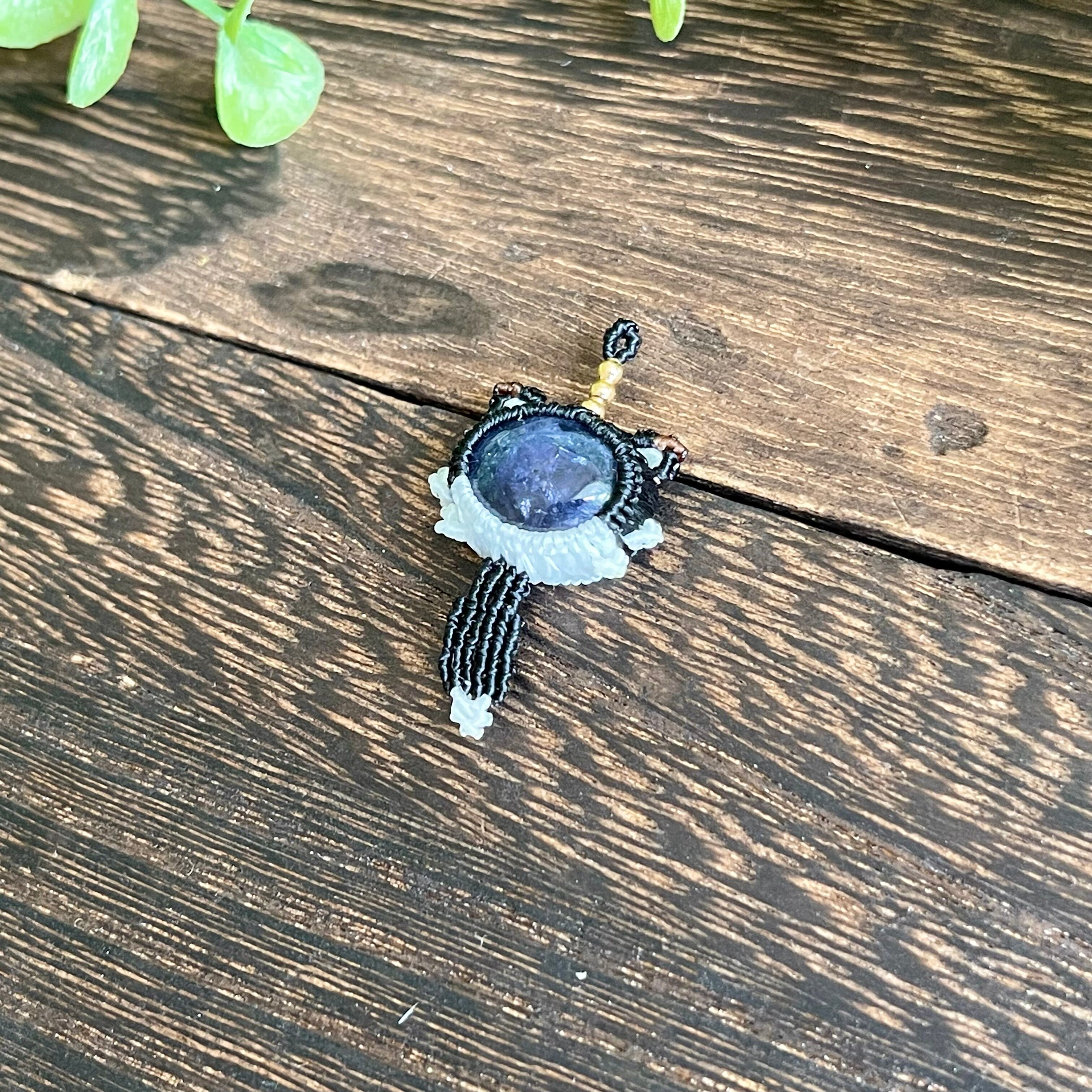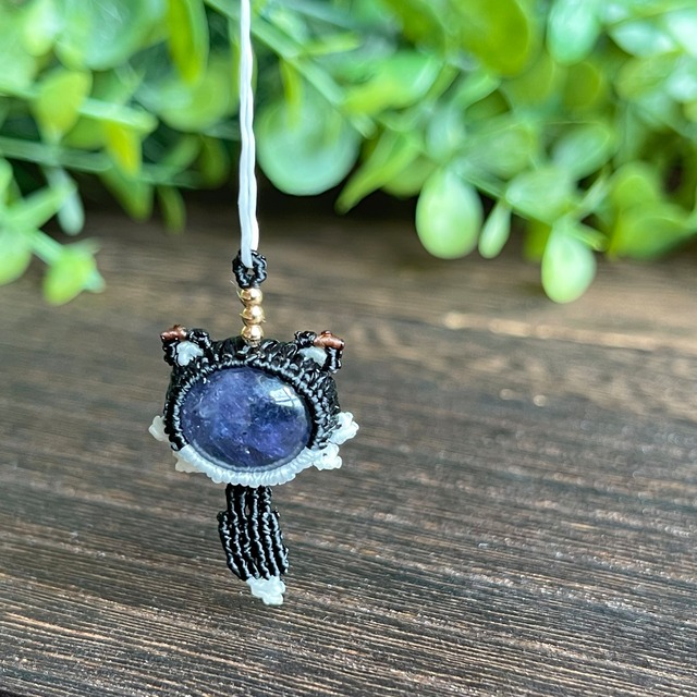 アイオライト[キツネ]マクラメアクセサリー〈チャーム、ネックレス、ピアス、イヤリング〉