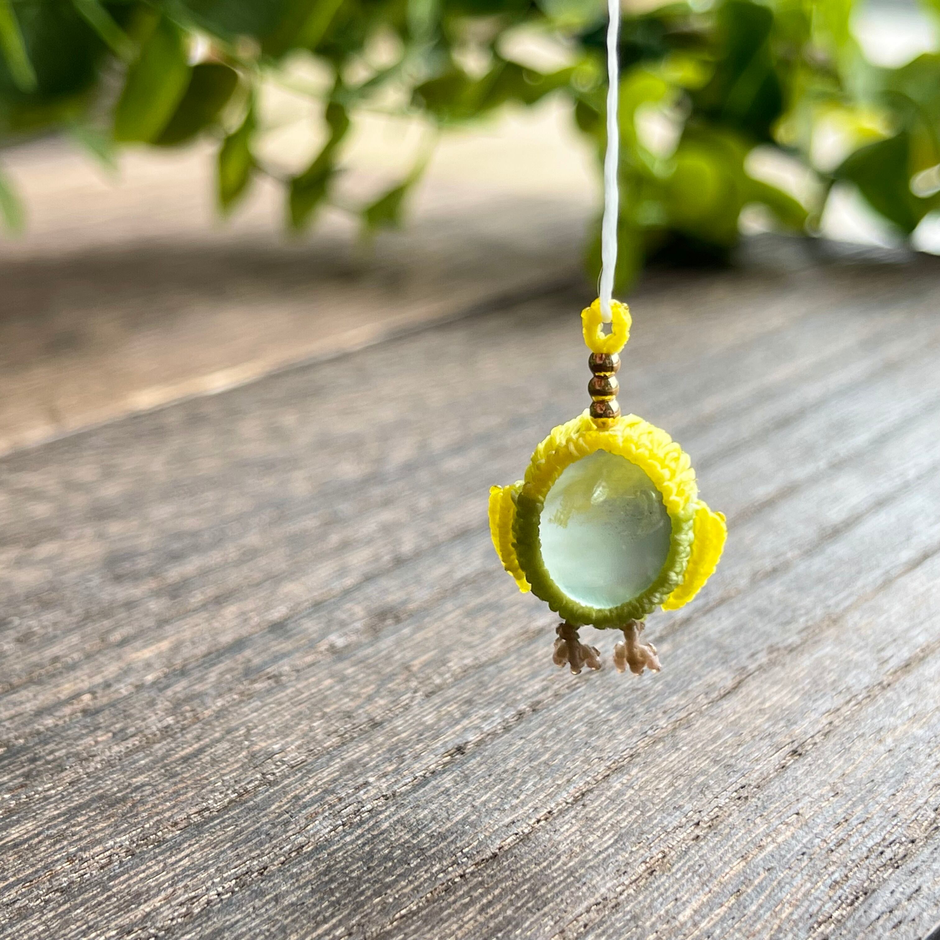 高品質プレナイト[インコ]マクラメアクセサリー〈チャーム、ネックレス、ピアス、イヤリング〉