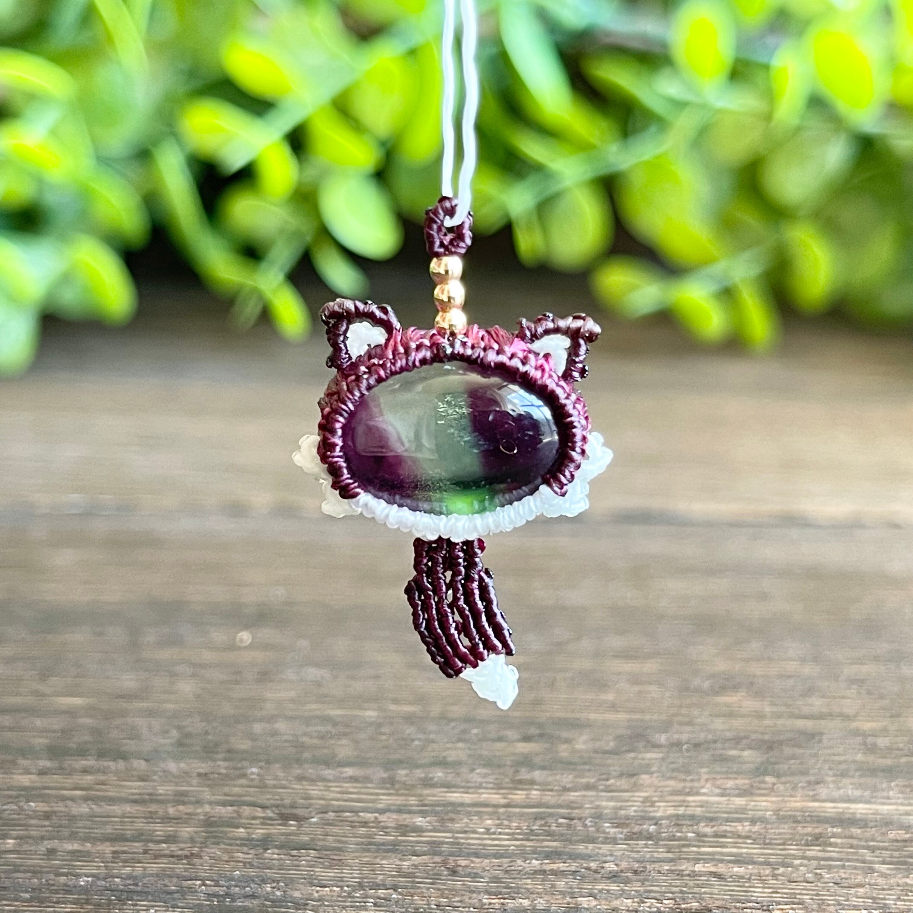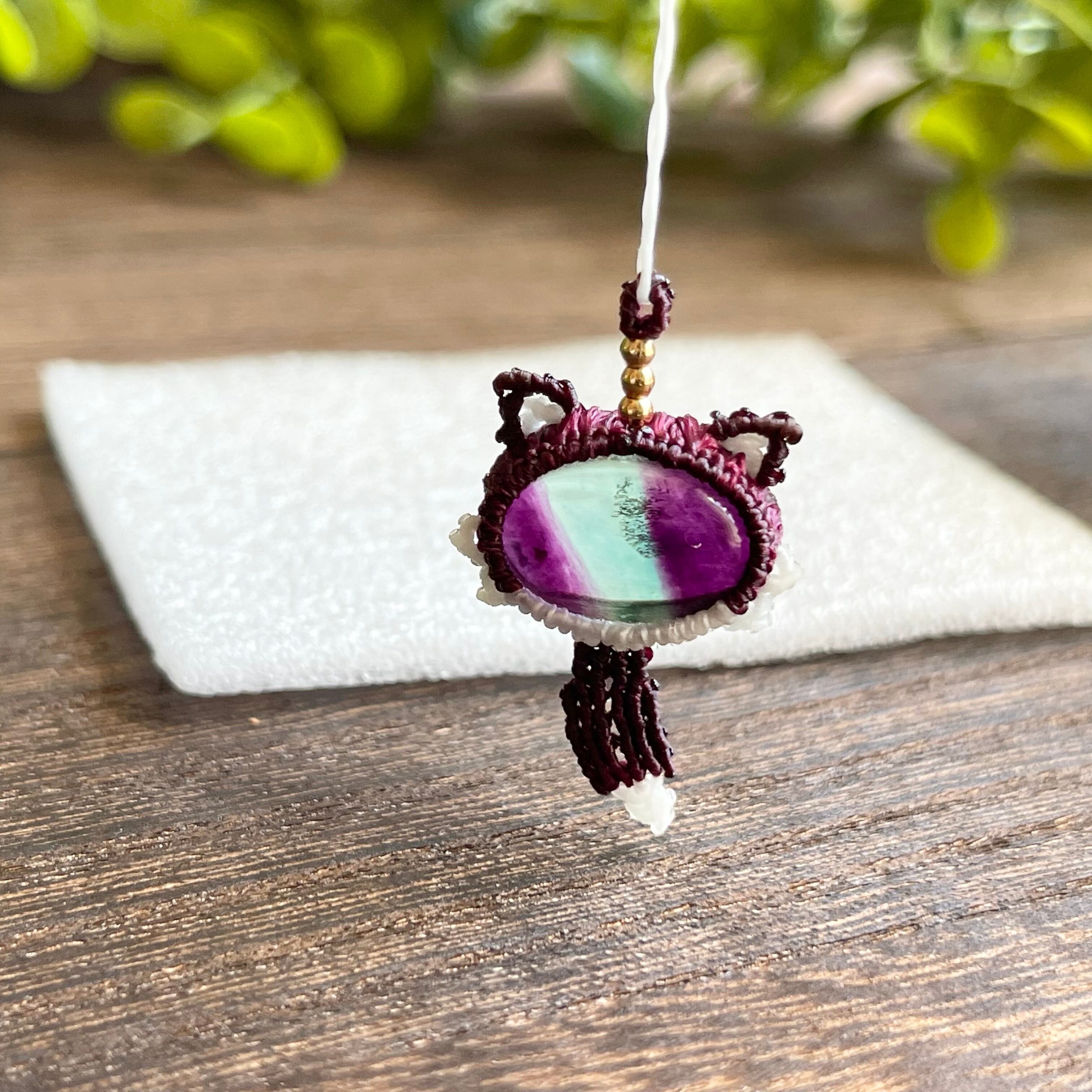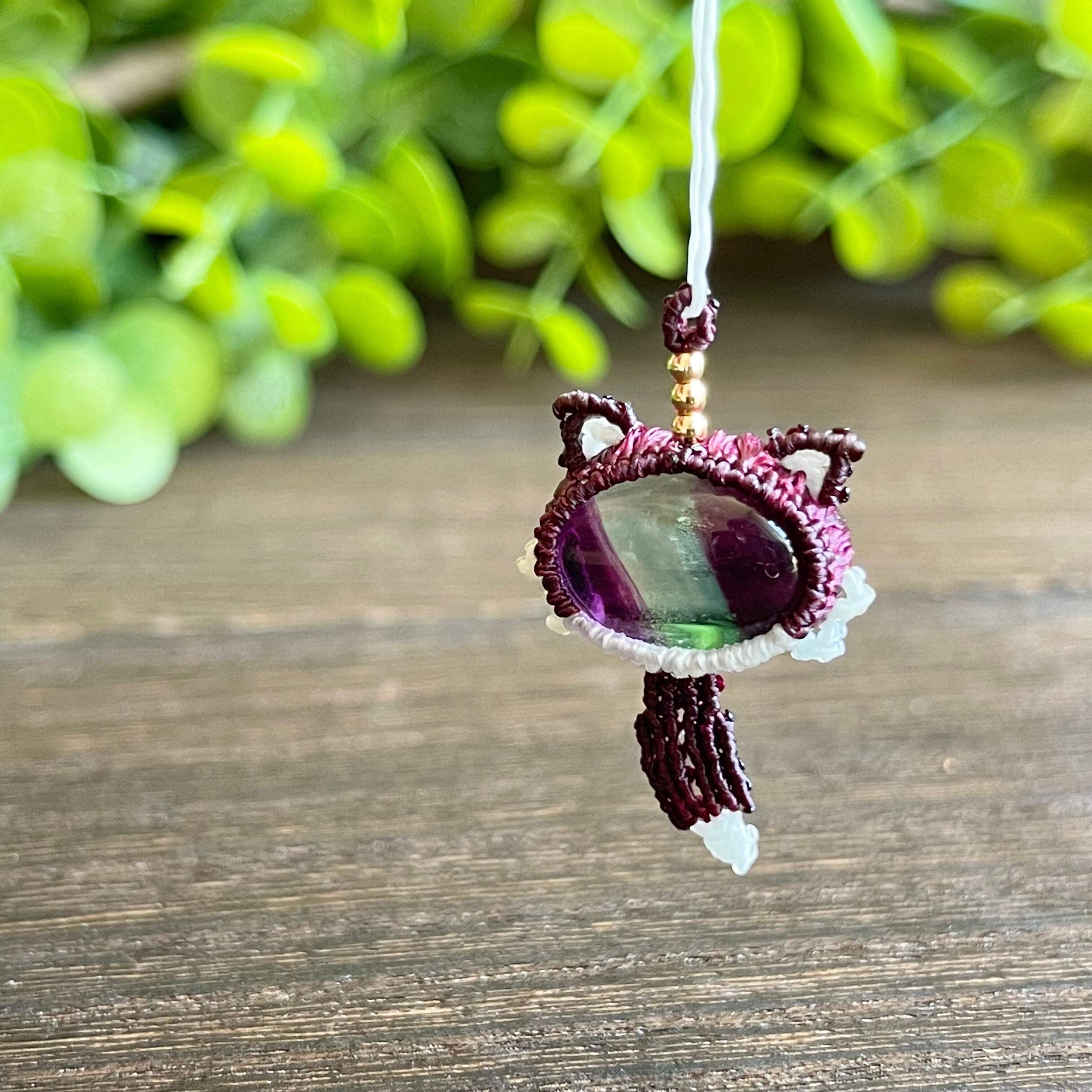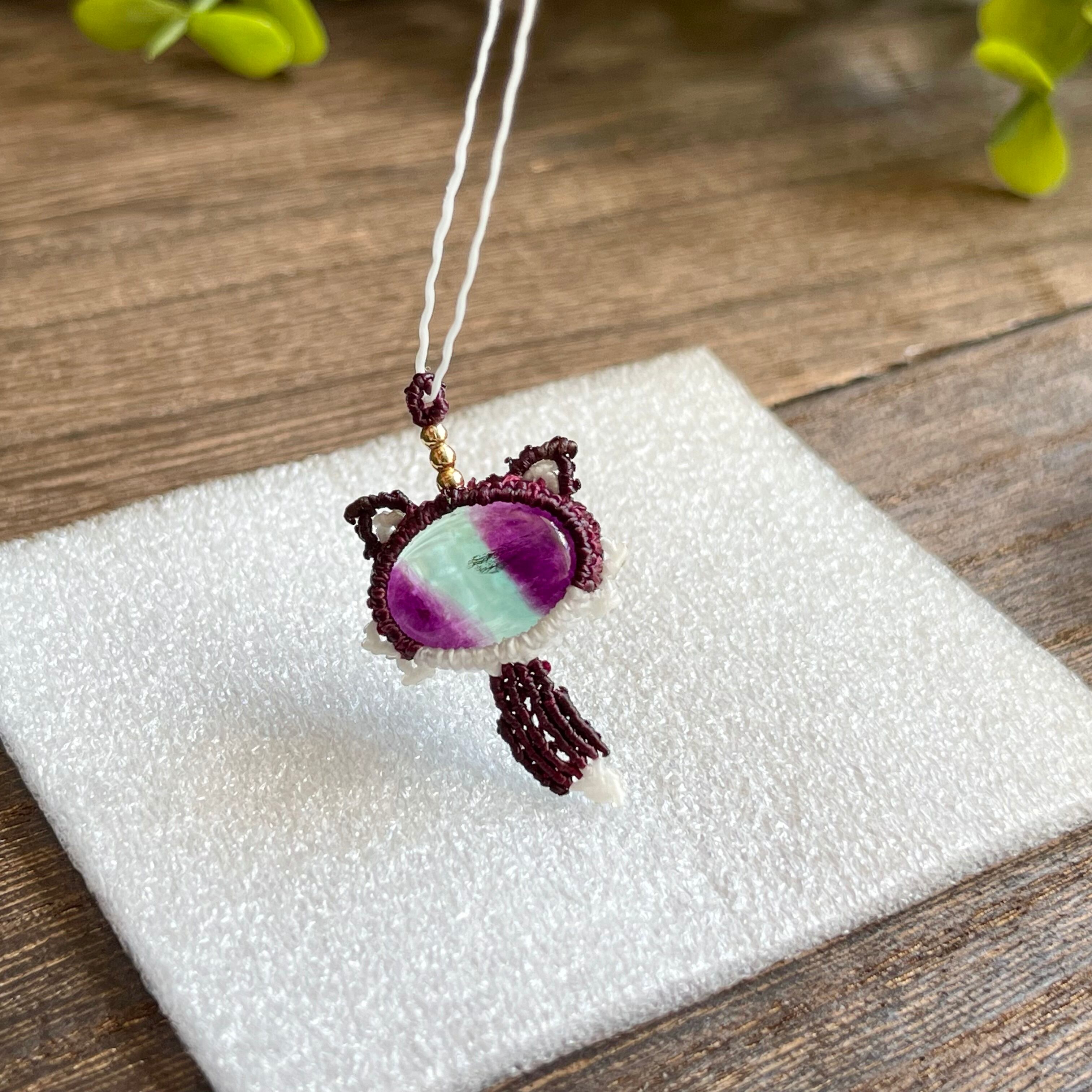 フローライト[キツネ]マクラメアクセサリー〈チャーム、ネックレス、ピアス、イヤリング〉