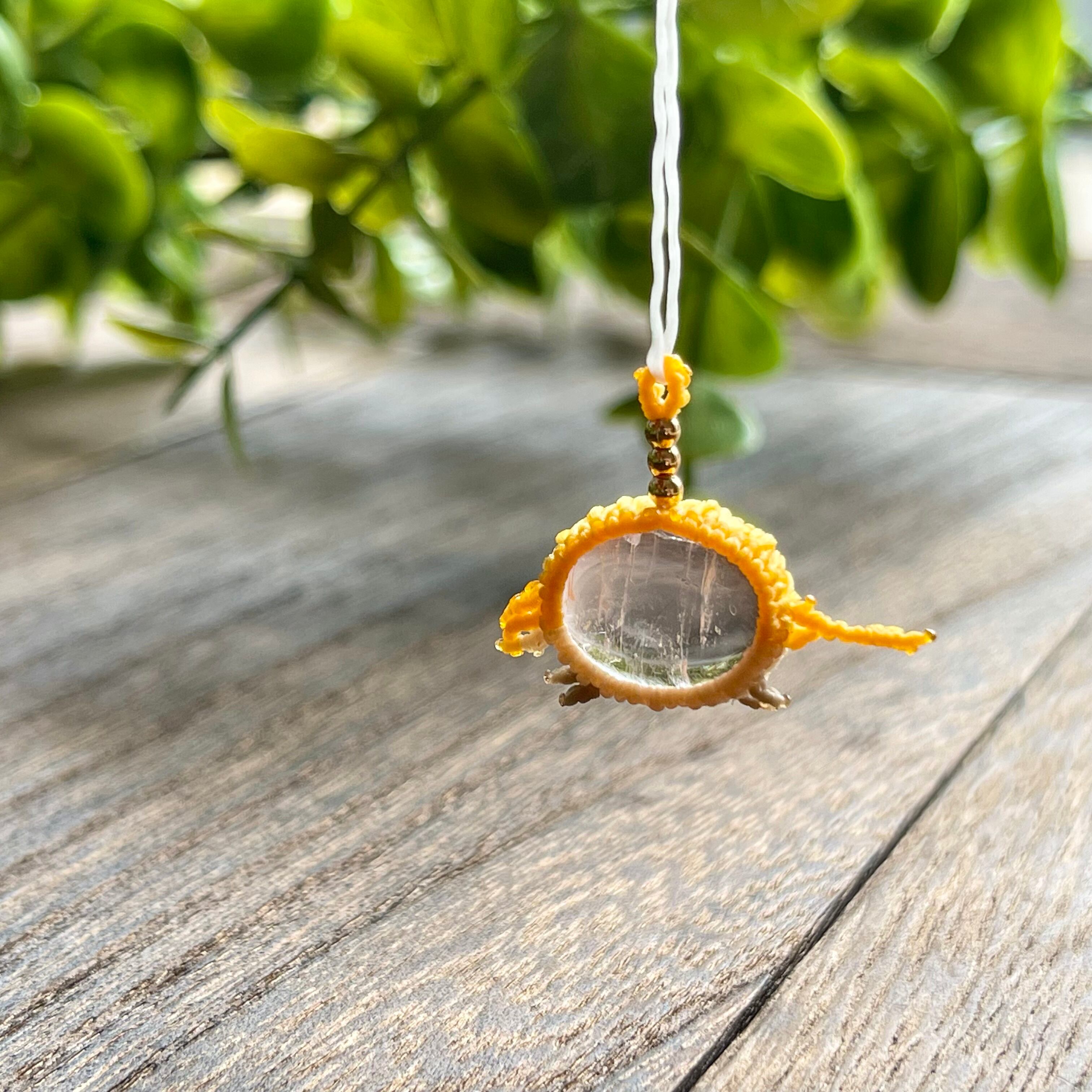 クンツァイト[アルマジロ]マクラメアクセサリー〈チャーム、ネックレス、ピアス、イヤリング〉