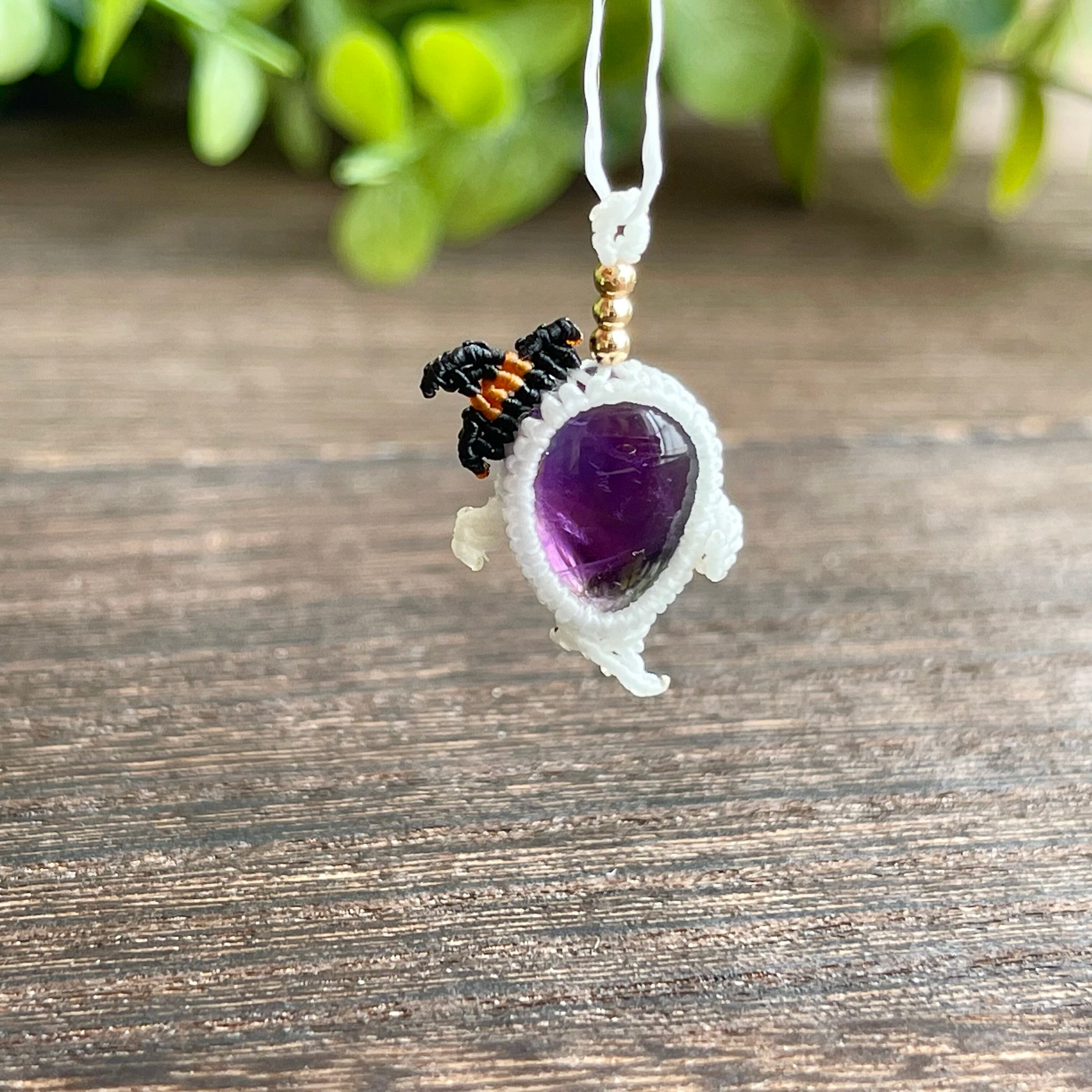アメジスト[ハロウィンオバケ]マクラメアクセサリー〈チャーム、ネックレス、ピアス、イヤリング〉
