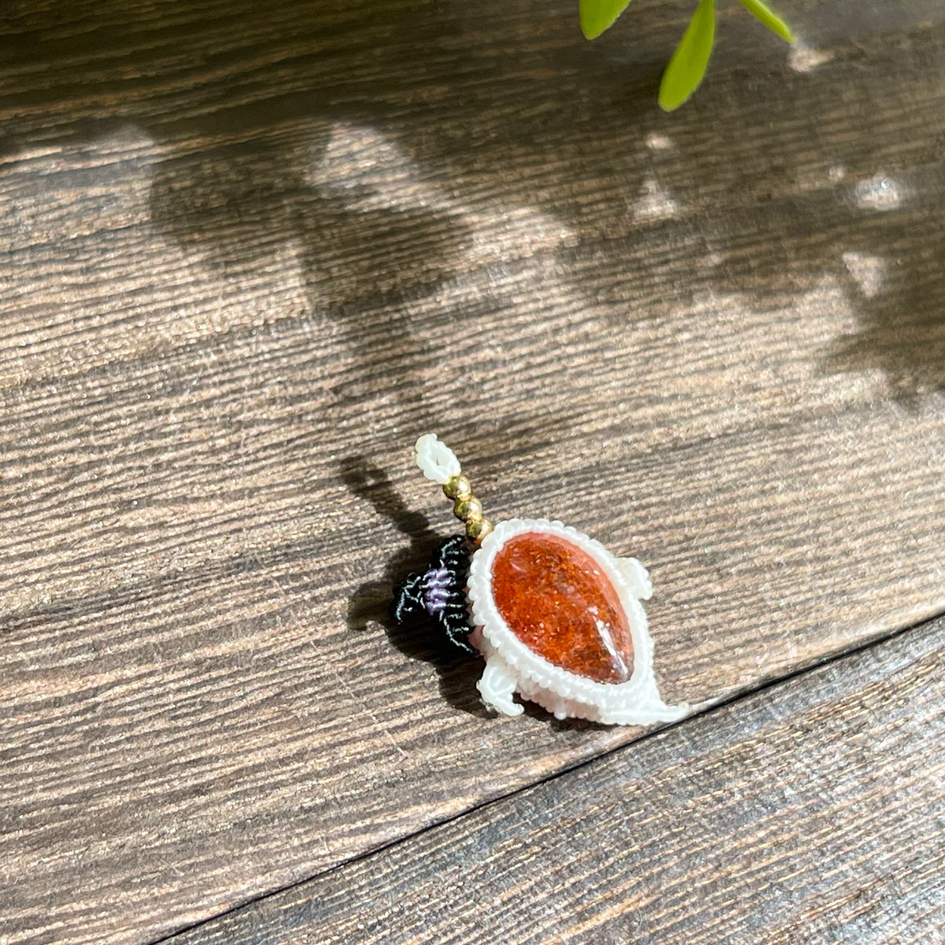 サンストーン[ハロウィンオバケ]マクラメアクセサリー〈チャーム、ネックレス、ピアス、イヤリング〉