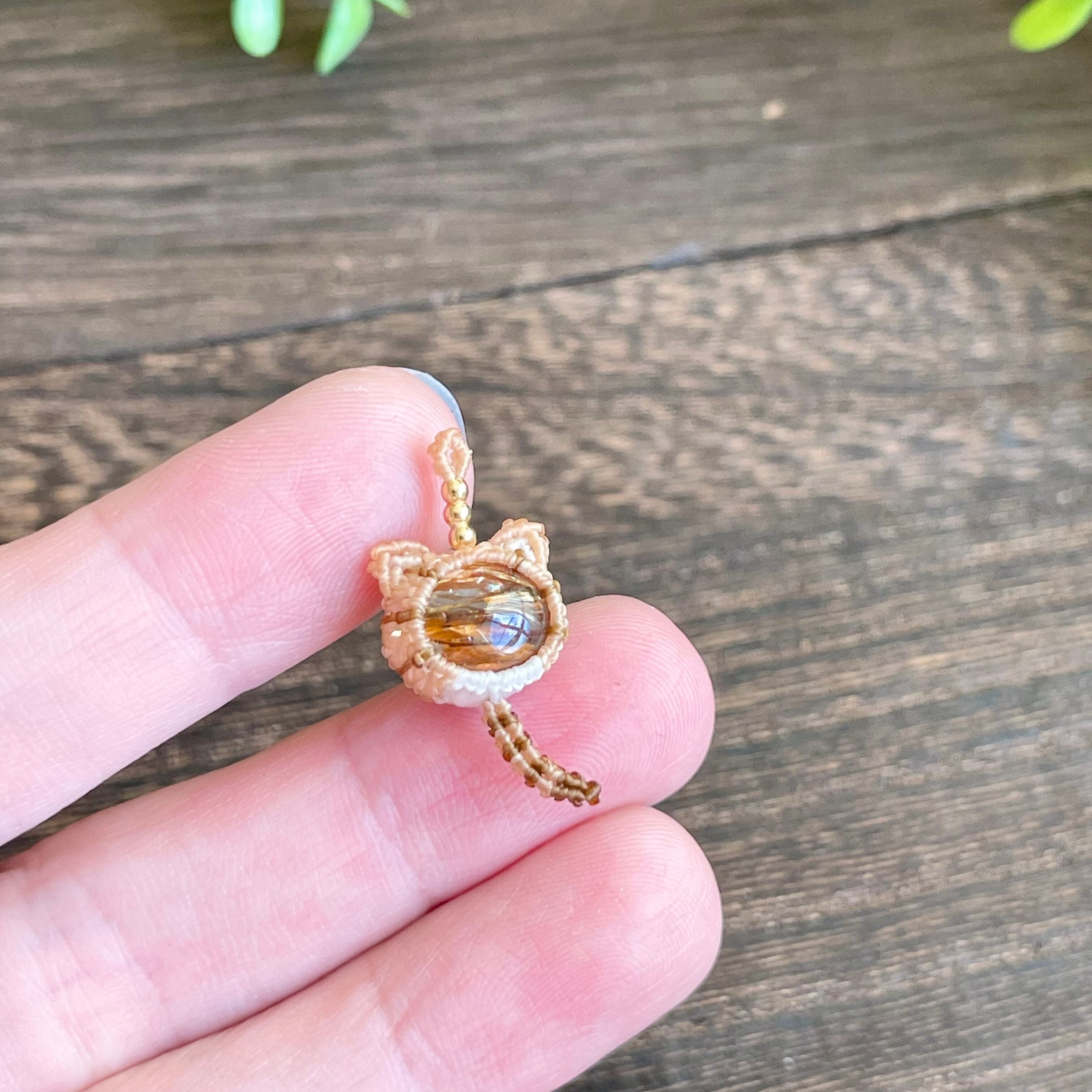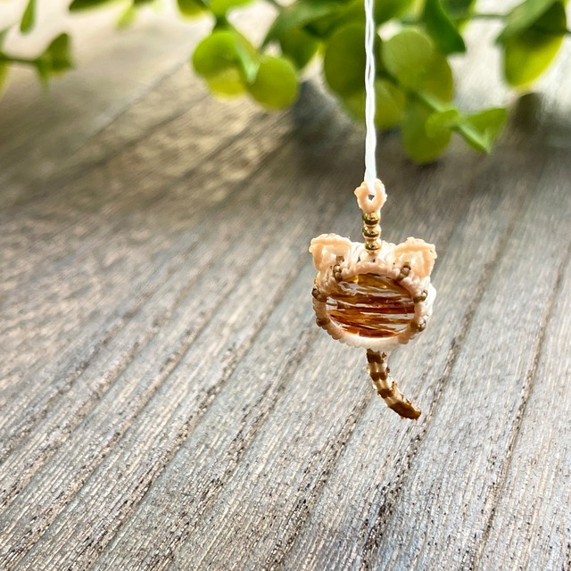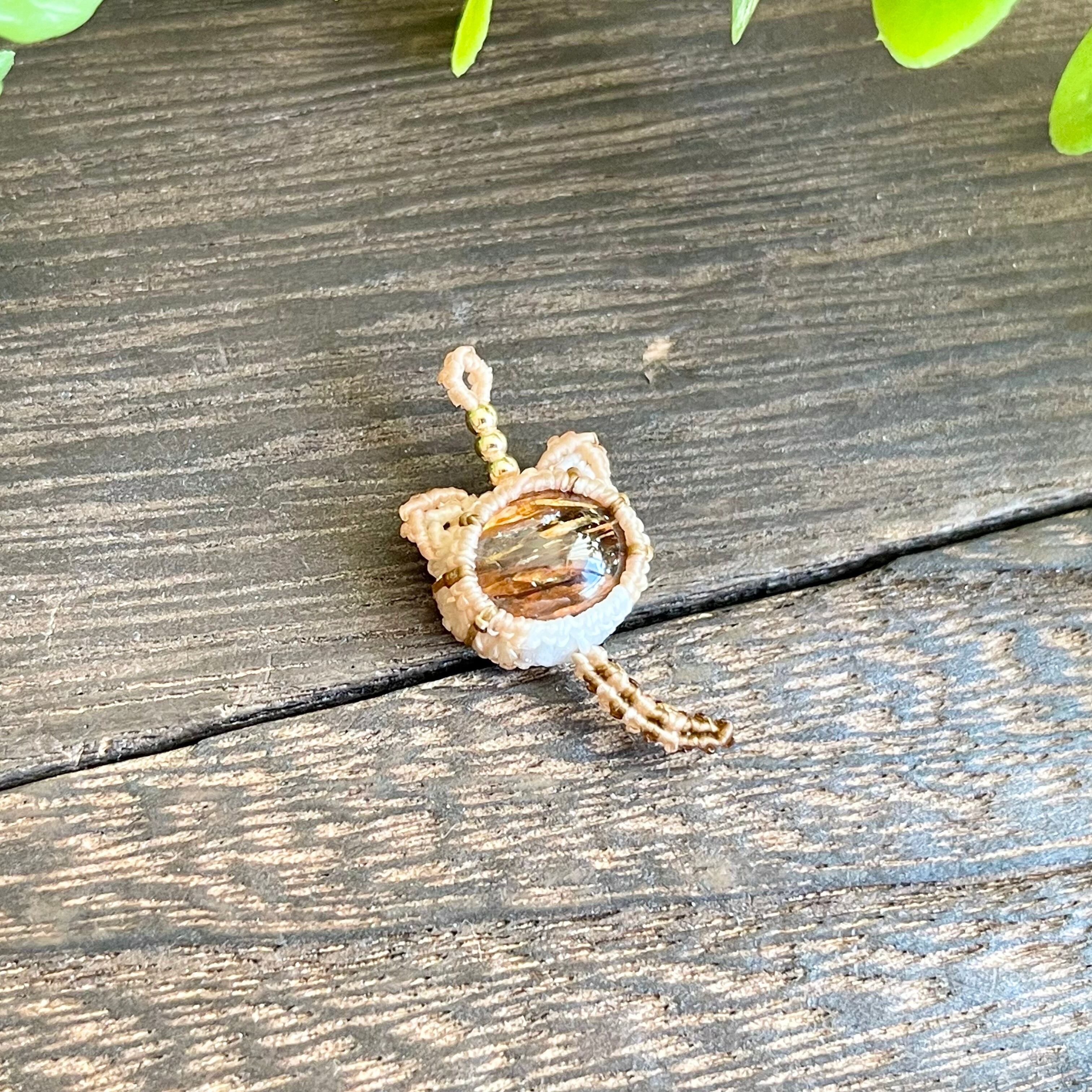 フォリエーテッドマイカinクォーツ[茶トラ]マクラメアクセサリー〈チャーム、ネックレス、ピアス、イヤリング〉