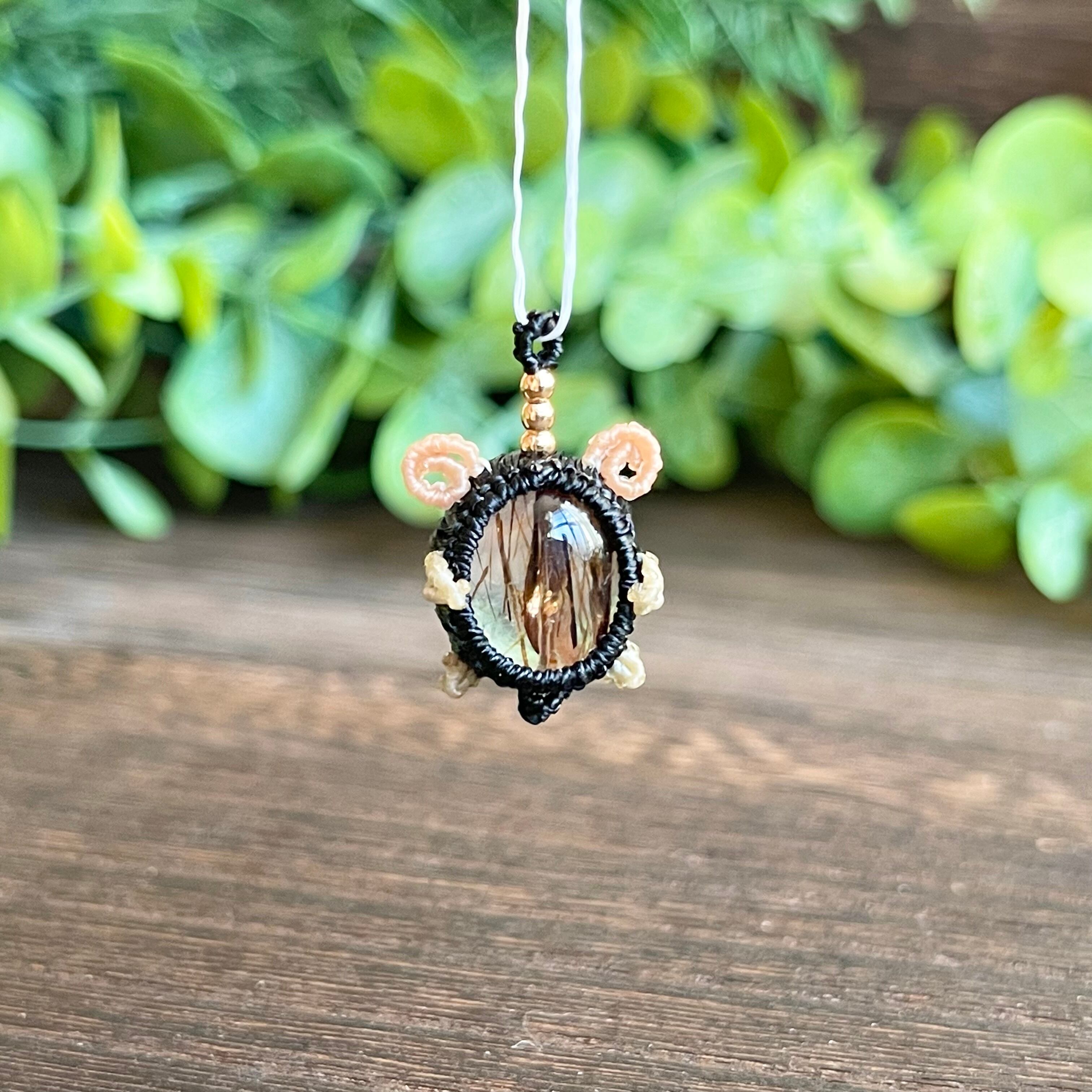 フォリエーテッドマイカinクォーツ[ヒツジ]マクラメアクセサリー〈チャーム、ネックレス、ピアス、イヤリング〉