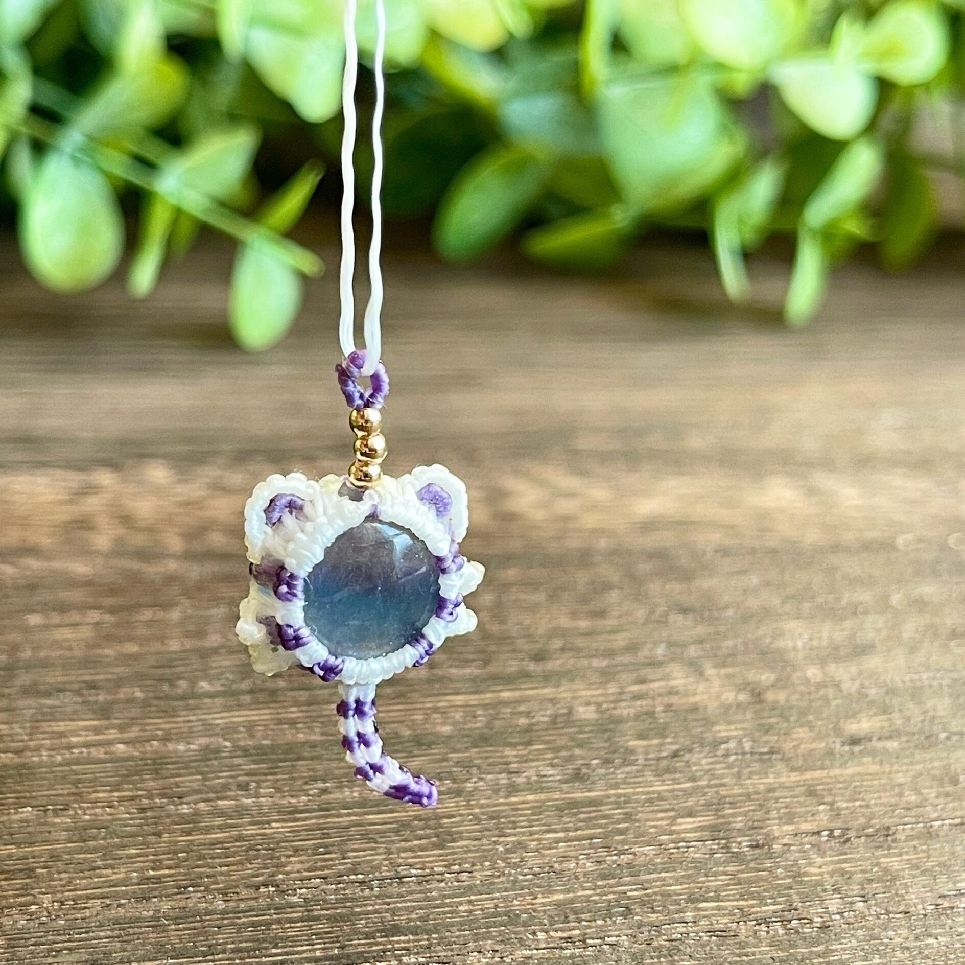 フローライト[ホワイトタイガー]マクラメアクセサリー〈チャーム、ネックレス、ピアス、イヤリング〉