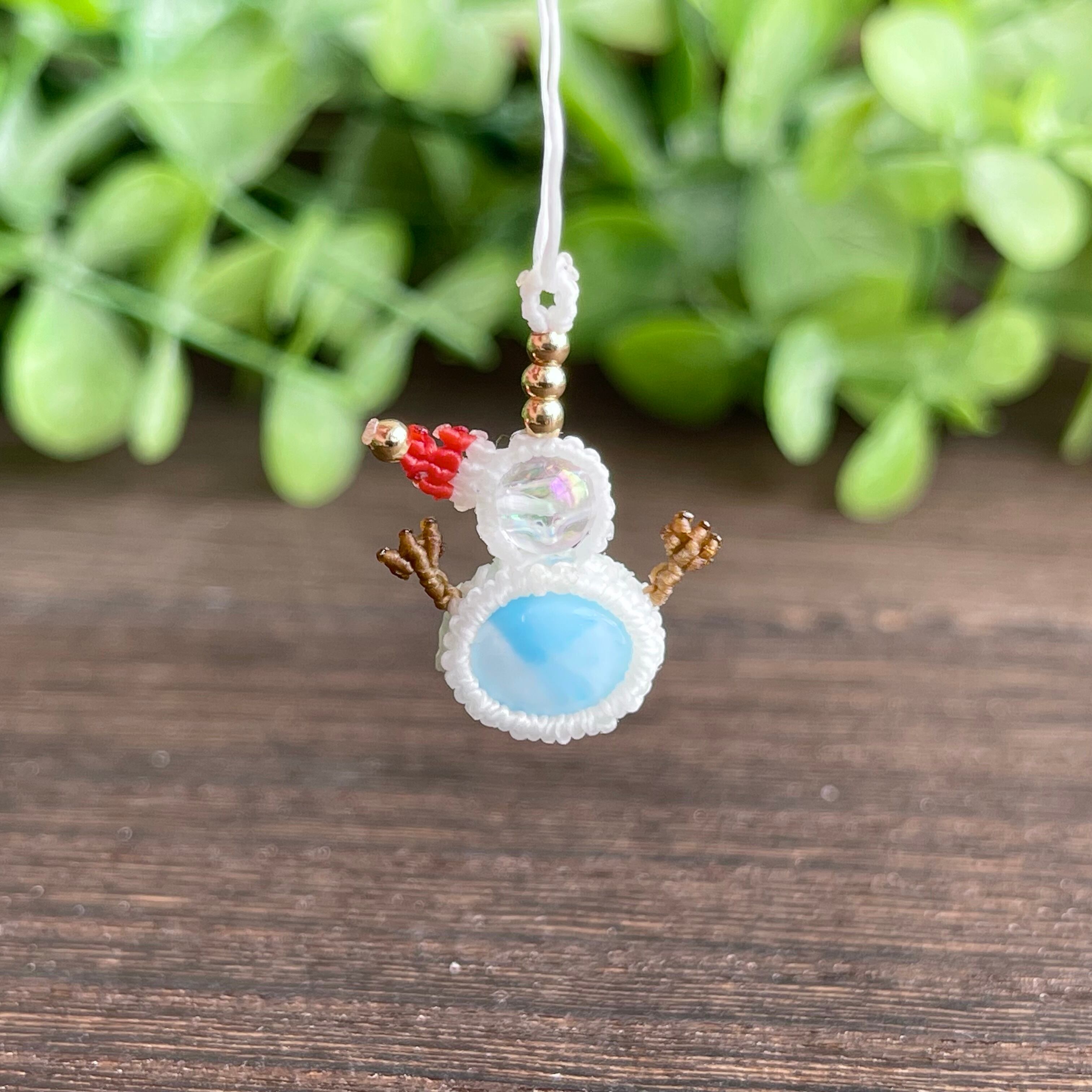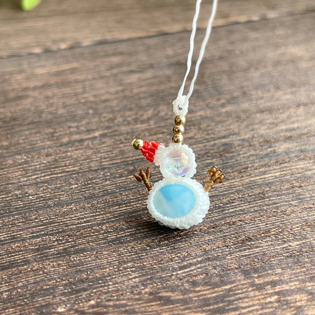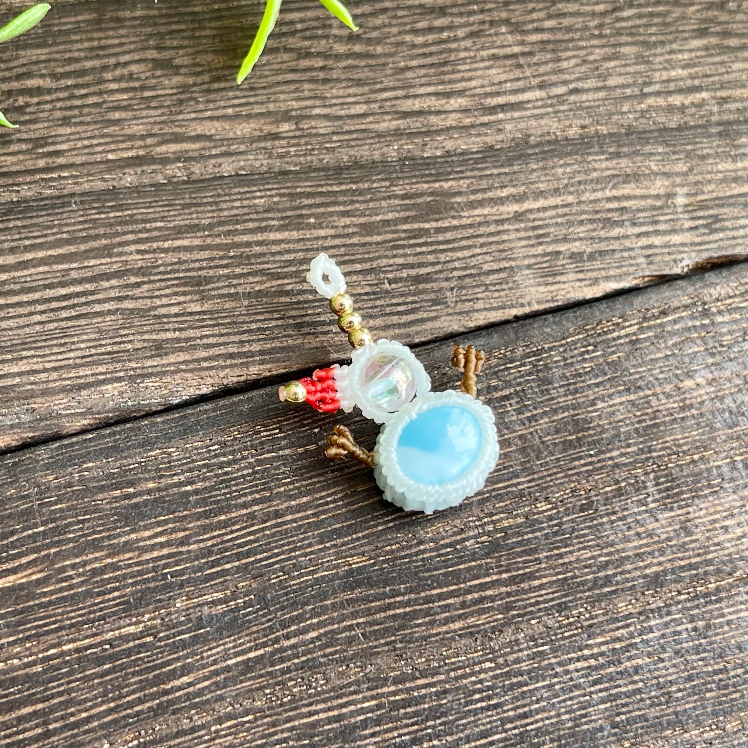 ラリマー[雪だるま]マクラメアクセサリー〈チャーム、ネックレス、ピアス、イヤリング〉