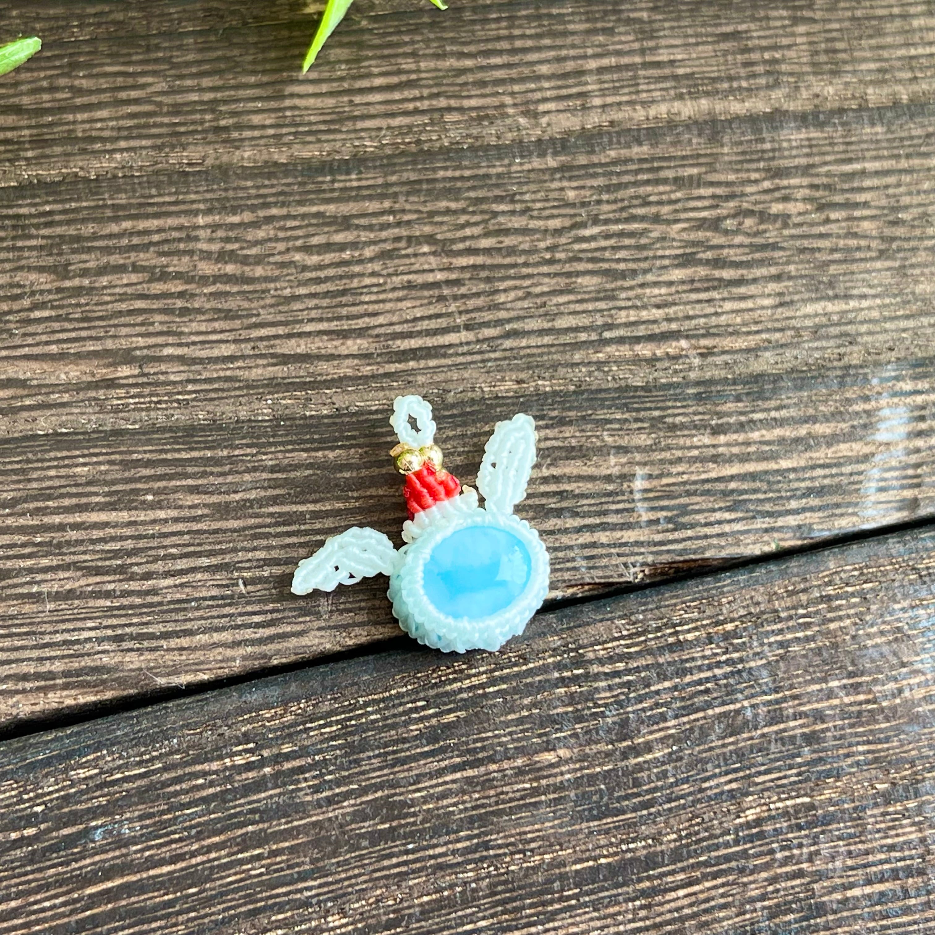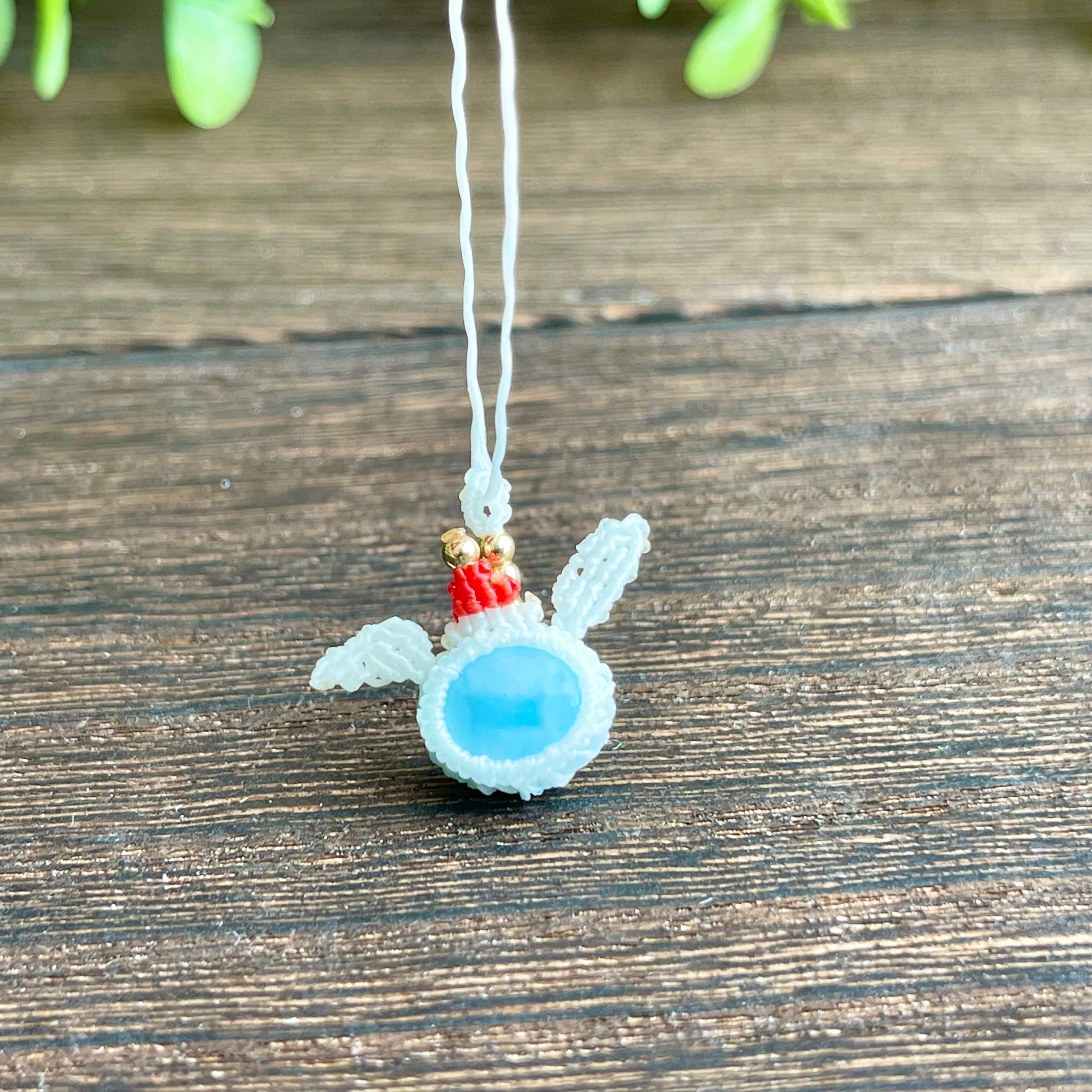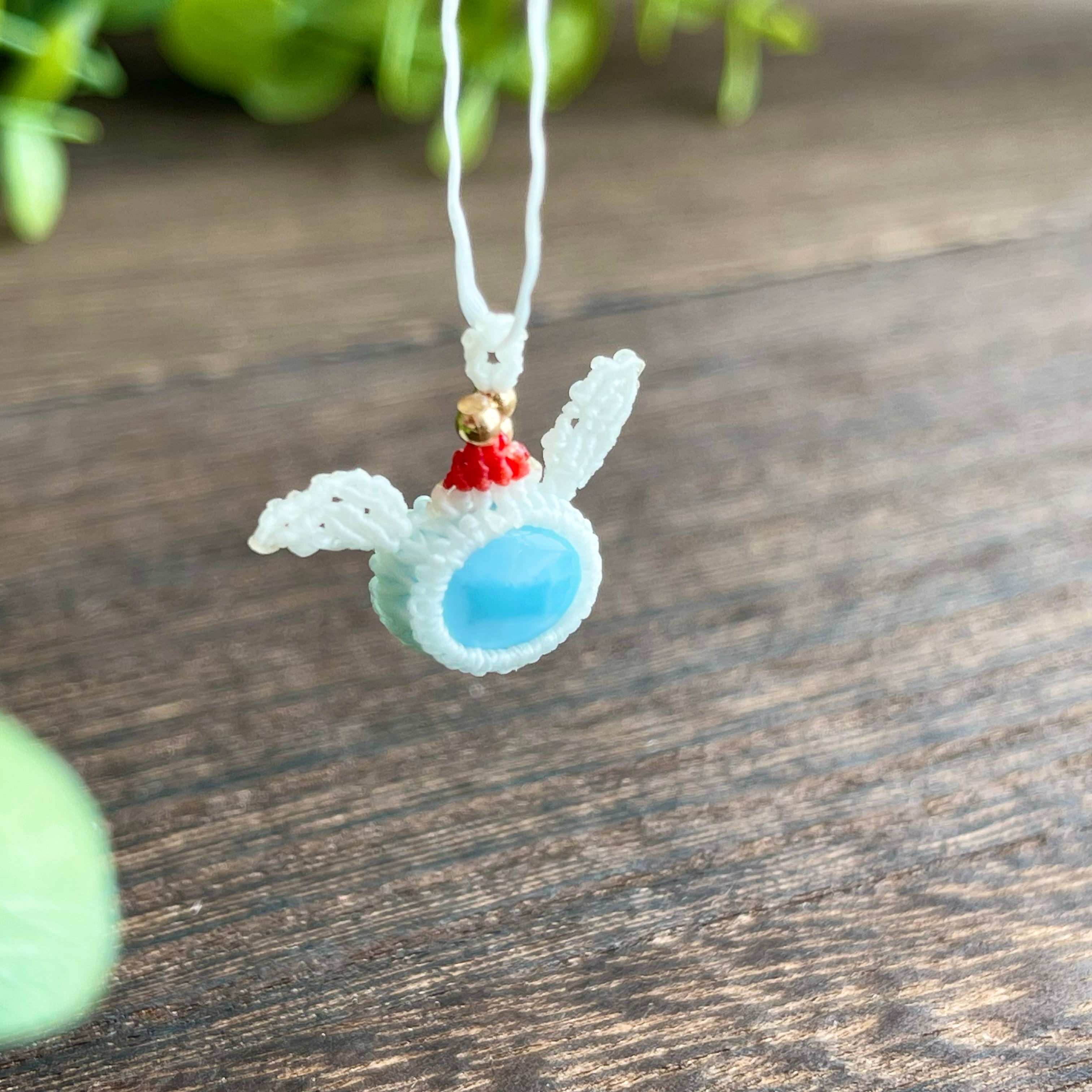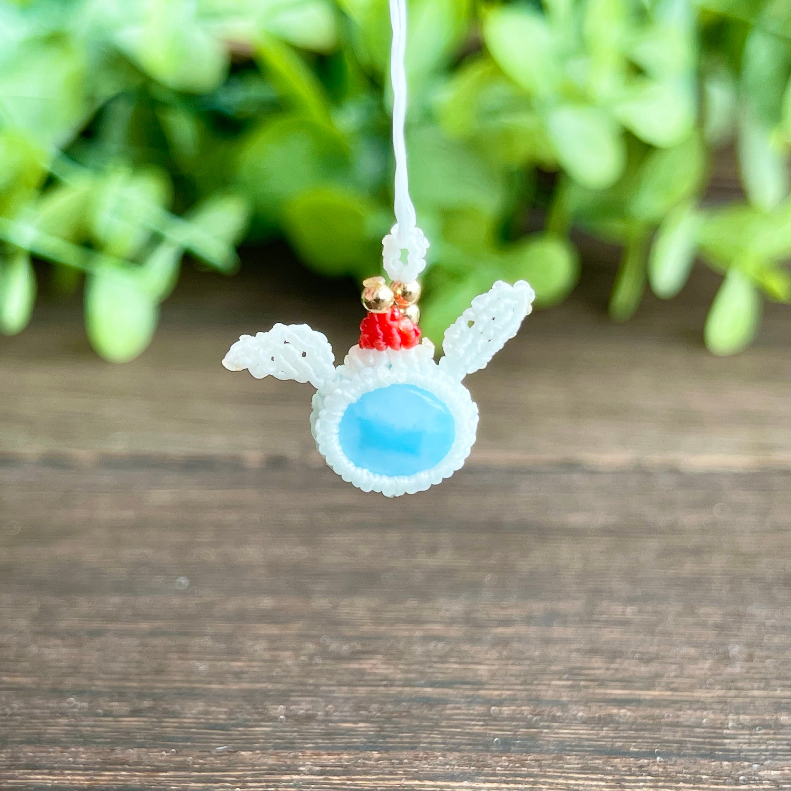 ラリマー[クリスマスウサギ]マクラメアクセサリー〈チャーム、ネックレス、ピアス、イヤリング〉