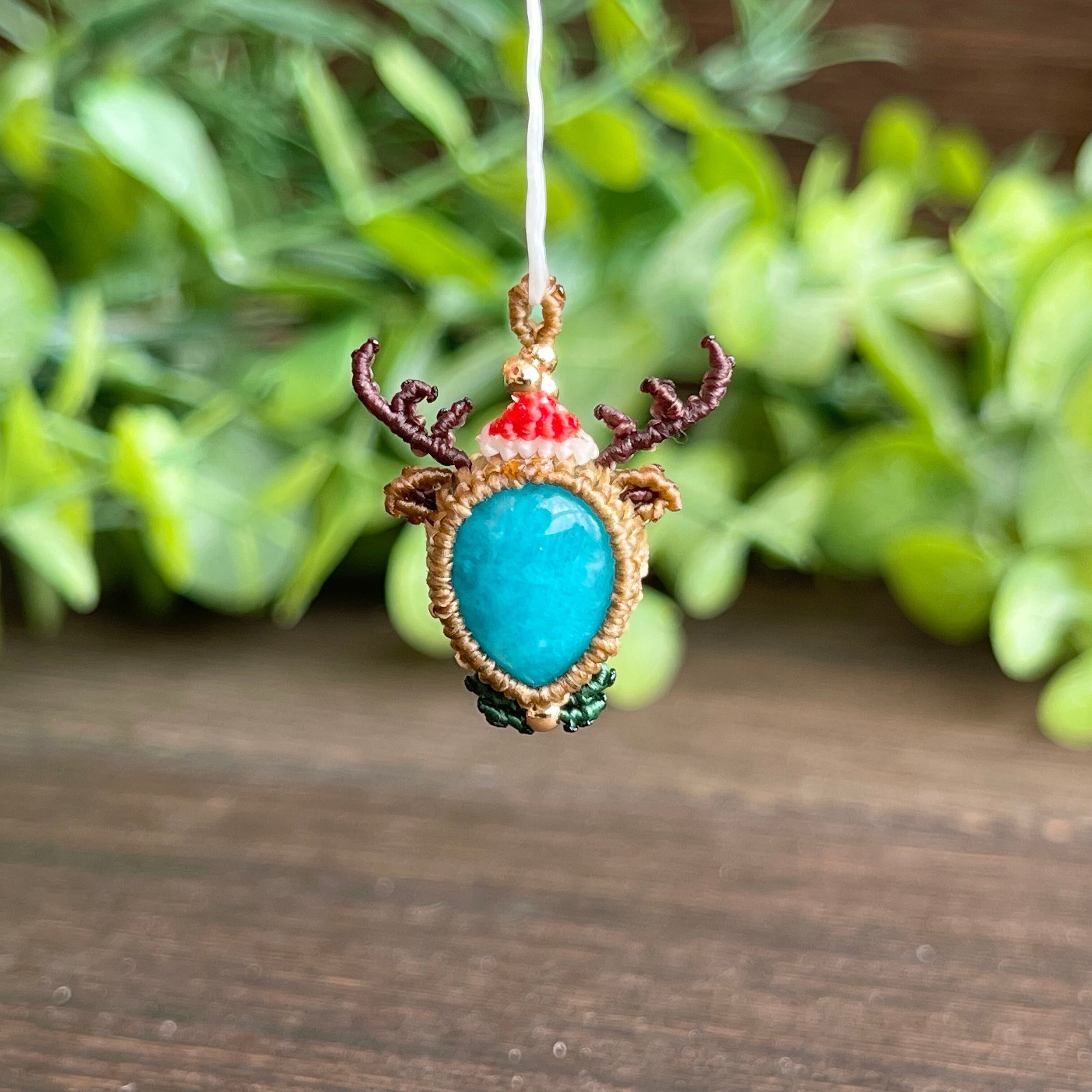 アマゾナイト[クリスマストナカイ]マクラメアクセサリー〈チャーム、ネックレス、ピアス、イヤリング〉