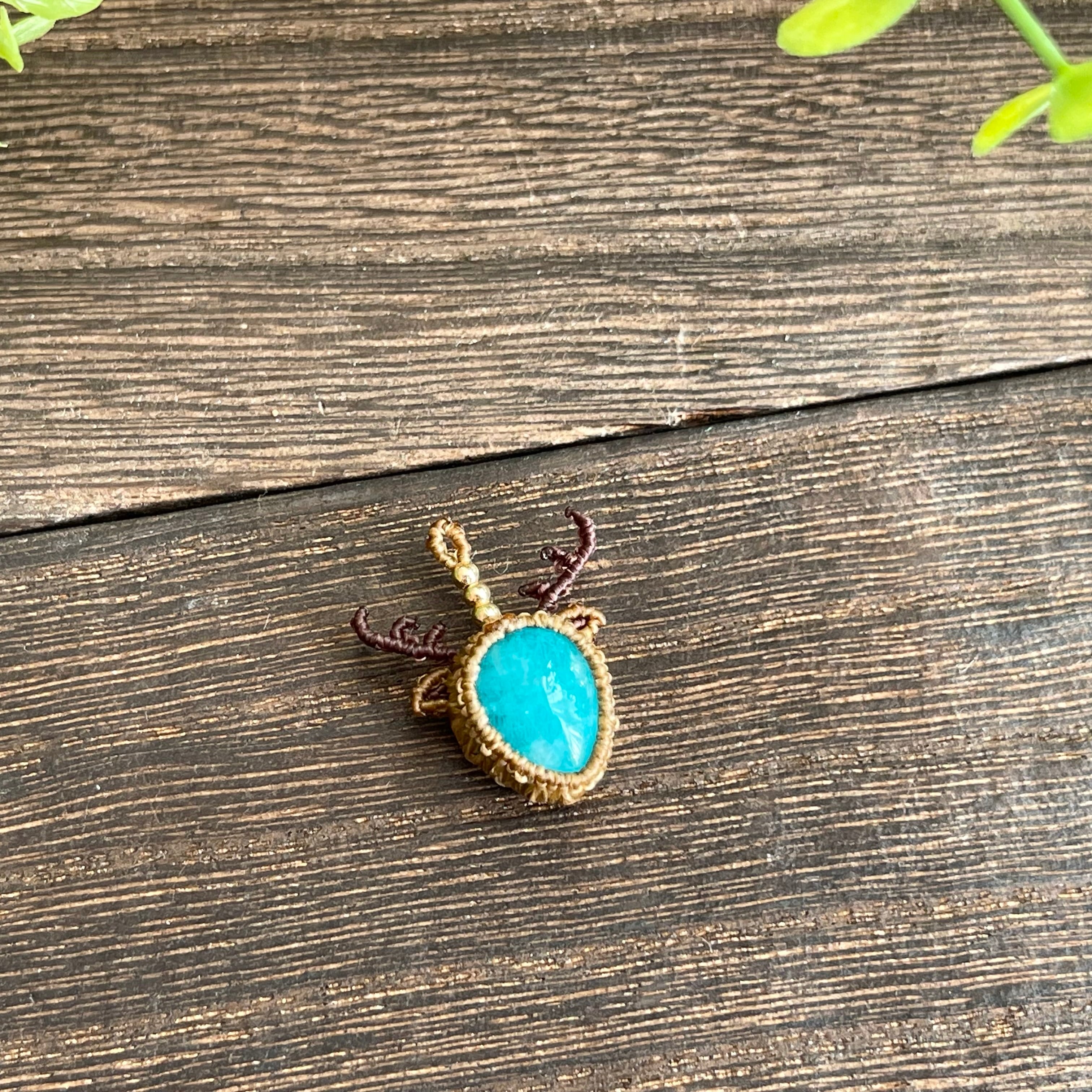 アマゾナイト[トナカイ]マクラメアクセサリー〈チャーム、ネックレス、ピアス、イヤリング〉
